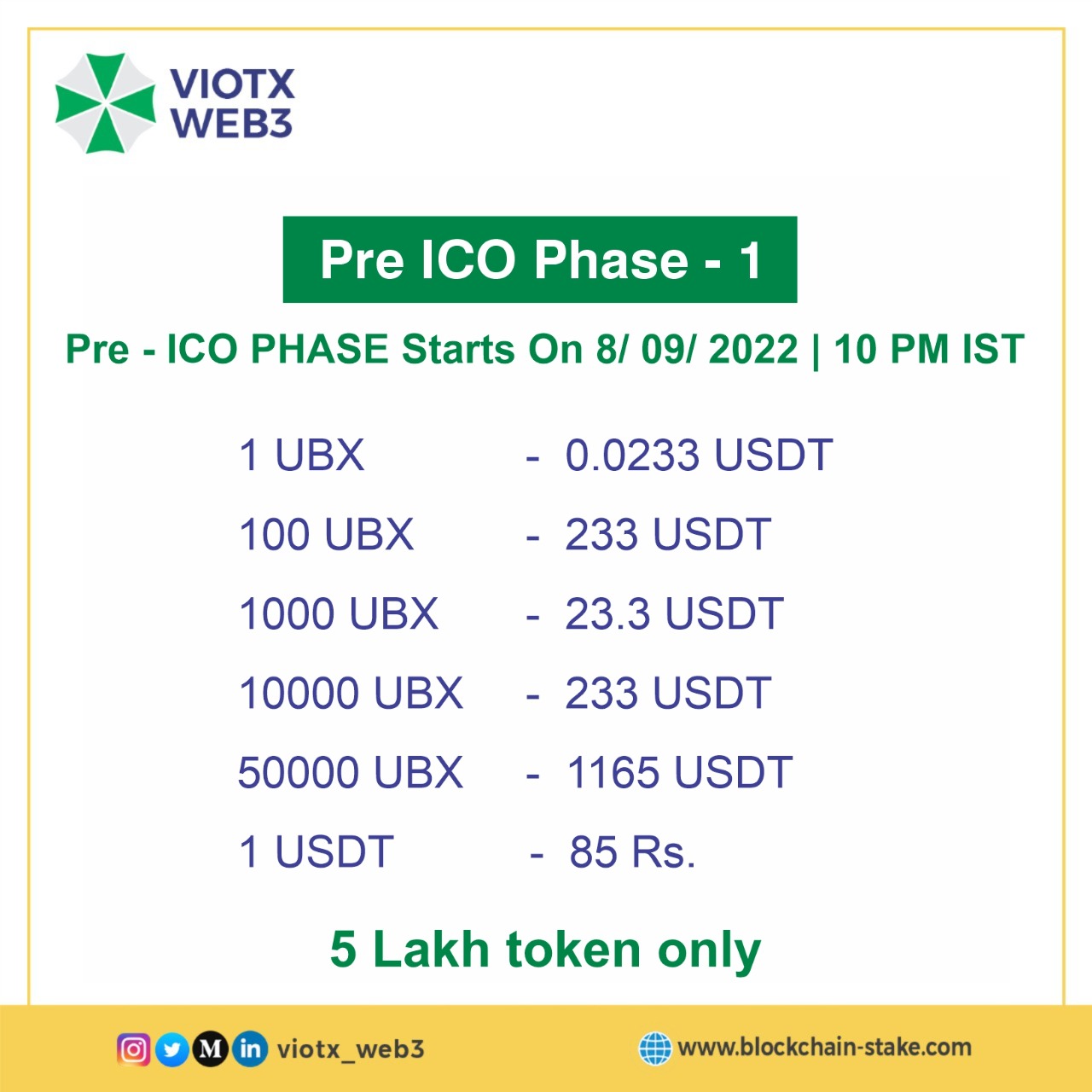 | Token Abbreviation (Ticker):------ | UBX |